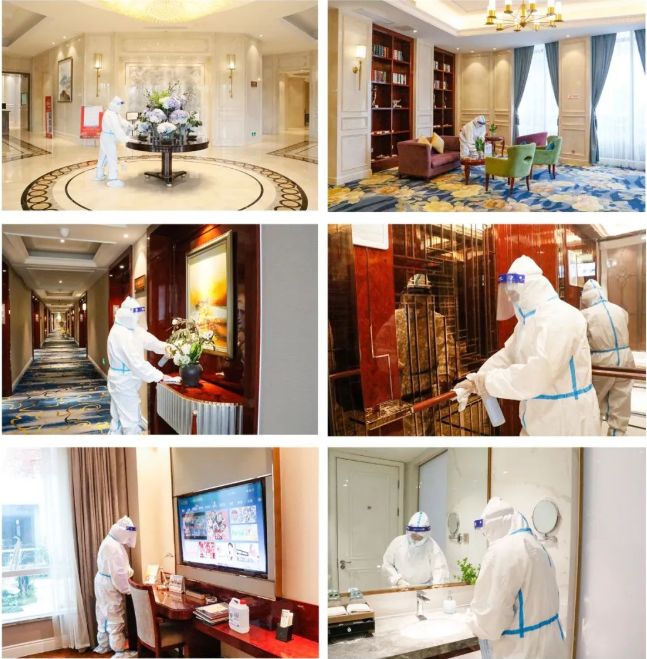 ▲酒店工作人員進(jìn)行三次徹底消殺