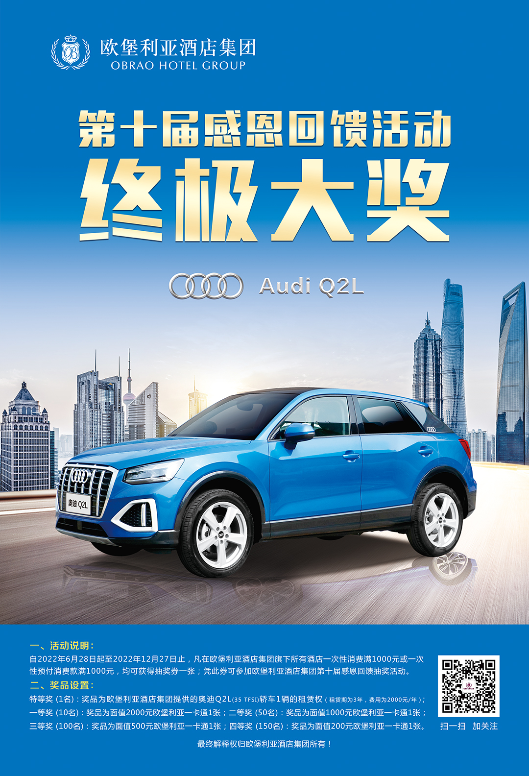 在歐堡利亞酒店集團第九屆感恩回饋活動接近尾聲時,“歐堡利亞酒店集團第十屆感恩回饋活動”正式啟動,在2022年6月28日至2022年12月27日期間,凡在歐堡利亞酒店集團旗下的所有酒店一次消費滿1000元或一次預付消費滿1000元的客戶,均可獲贈歐堡利亞酒店集團第十屆感恩回饋活動的抽獎券1張,讓更多的歐堡利亞酒店新老賓客朋友在切身領略到舒適的入住體驗與美味的用餐感受后享受不虞之驚喜。