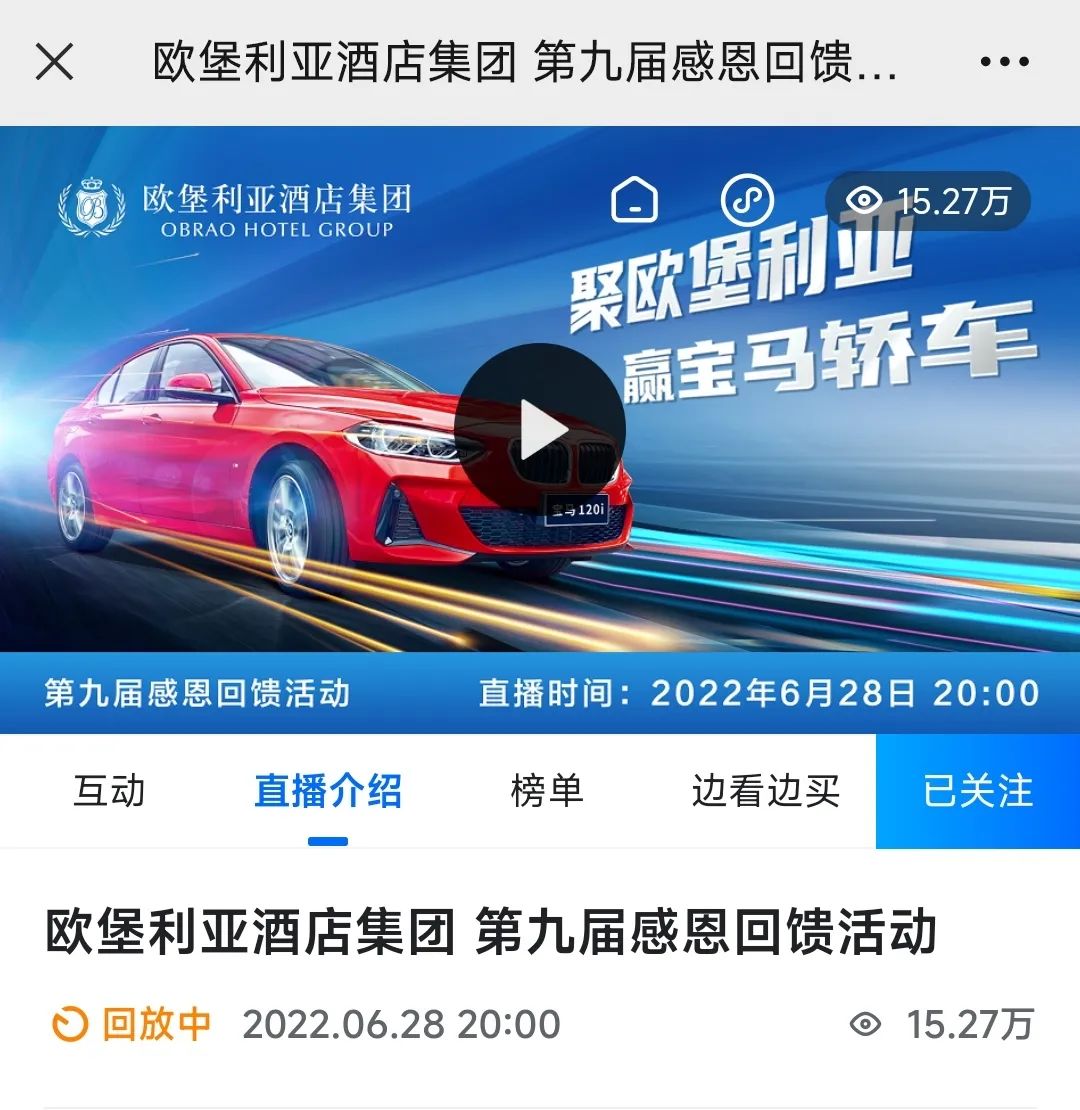 ▲ 歐堡利亞酒店集團(tuán)第九屆感恩回饋活動(dòng)直播間
