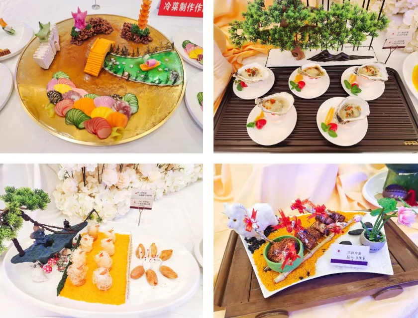 熱菜制作、冷菜制作、精細刀工的參賽選手各展其能,精益求精,紛紛拿出看家的本領、亮出練就的絕活,成排灶臺上不時翻起火紅的浪花,嫻熟的刀法刻畫出美妙絢麗的山水畫卷,貌似很平常不過的每一道熱菜、每一盤冷菜、每一個刀法卻蘊含著細致入微、精雕細琢、至真至誠,用靈巧的雙手和完美的創(chuàng)意展示出琳瑯滿目的美味佳肴,用色、香、味、形一應俱全征服了賽場的所有人,更為美食愛好者帶來了一場視覺與味蕾的盛宴!