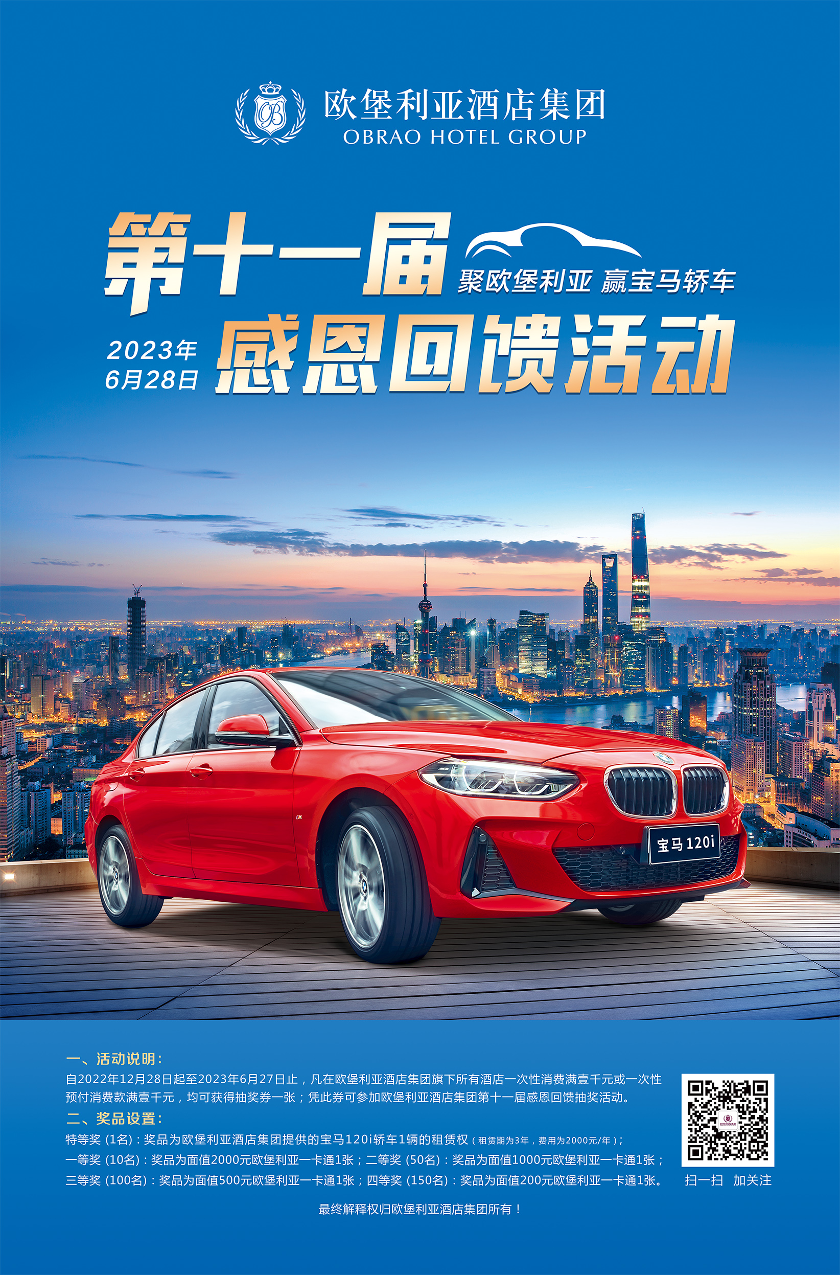 根據抽獎規則,凡在2022年6月28日至2022年12月27日期間,在歐堡利亞酒店集團旗下的所有酒店一次消費滿1000元或一次預付消費滿1000元的客戶,均可獲贈歐堡利亞酒店集團第十屆感恩回饋活動抽獎券1張并參加線上直播抽獎。
