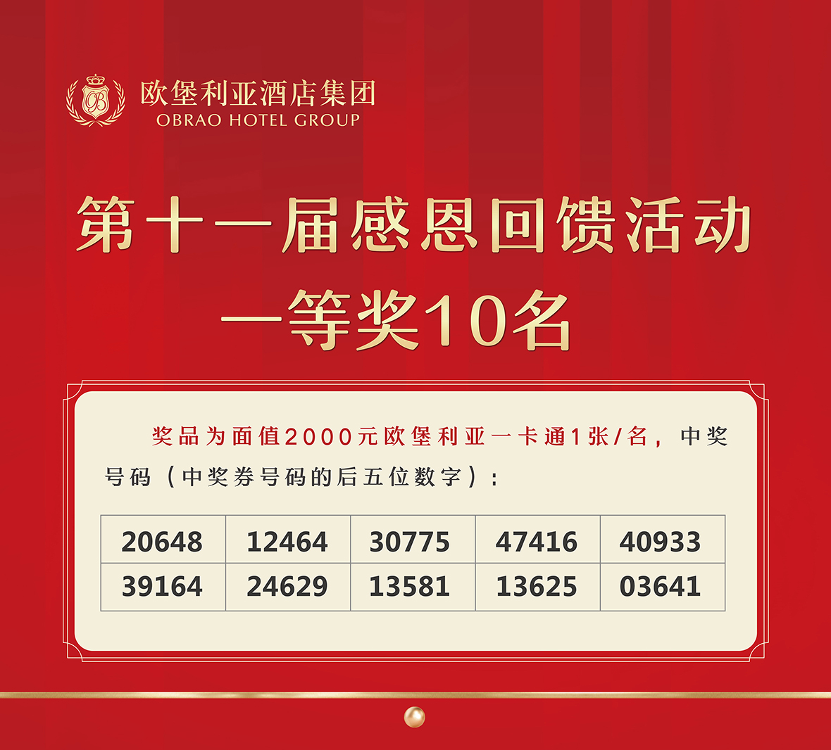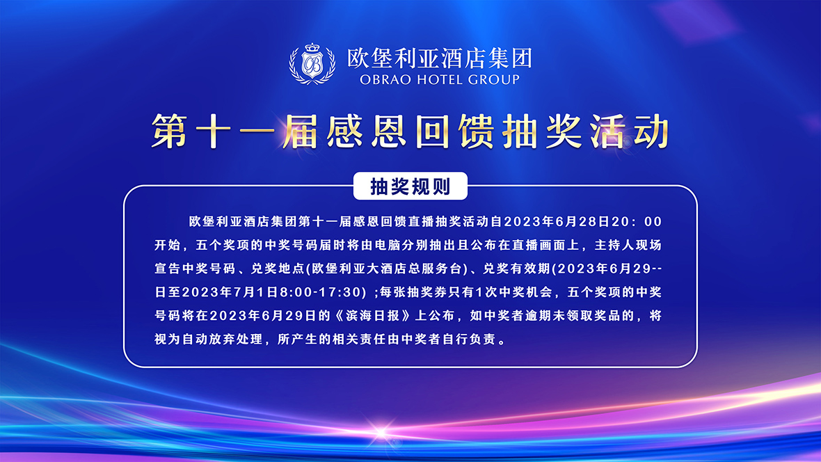 ▲歐堡利亞酒店集團第十一屆感恩回饋活動抽獎規(guī)則