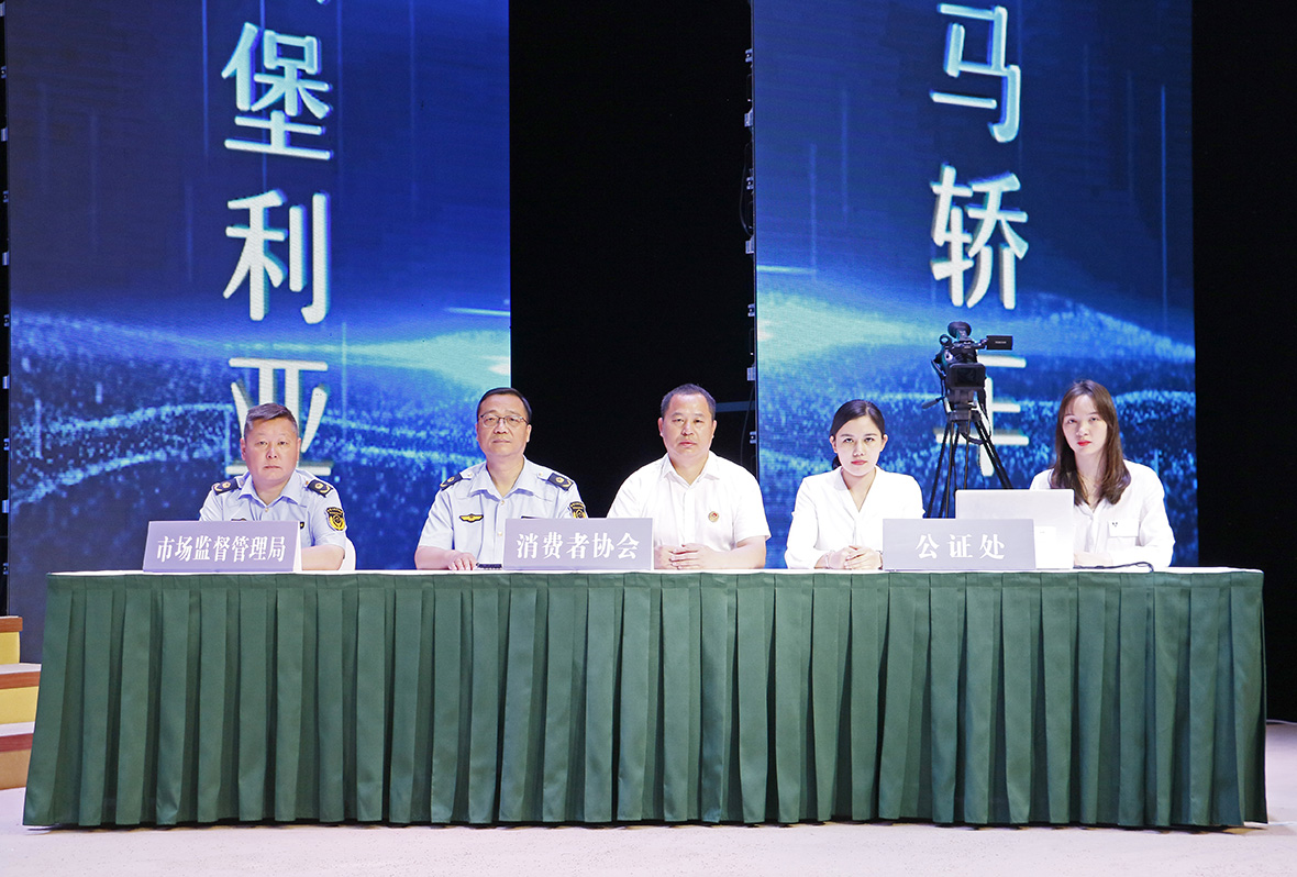 ▲濱海縣消費者協(xié)會及市場監(jiān)督管理局城南分局、公證處在直播現(xiàn)場見證