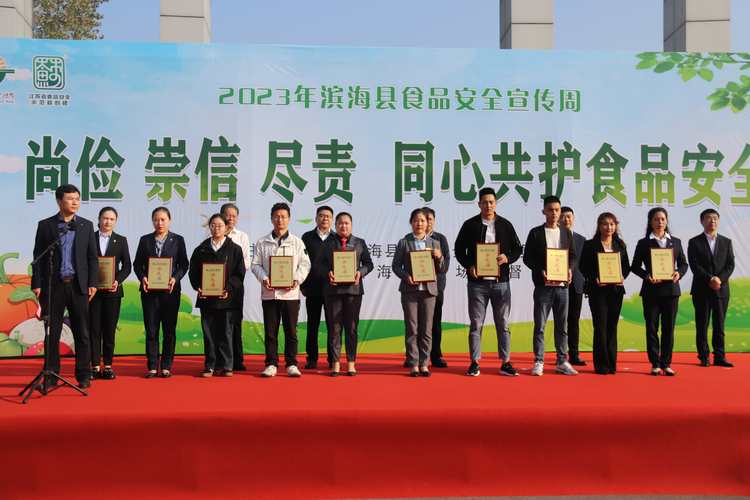 民以食為天,食以安為先。為深入宣傳食品安全法律法規,廣泛普及食品安全知識,積極引導社會公眾樹立健康科學的飲食理念,全面構建“人人關心食品安全,人人參與食品安全”的食品消費氛圍,切實消除食品安全隱患,全力守護人民群眾的“舌尖上的安全”,2023年10月31日,濱海縣食品安全工作委員會在濱海縣公園南門開展了以“尚儉崇信盡責,同心共護食品安全”為主題的2023年食品安全宣傳周啟動儀式,濱海縣人民政府副縣長李品、縣委宣傳部分管領導,縣食安辦、縣發改委、縣市場監管局、縣教育局、縣衛健委、農業農村局等濱海縣13家食安委成員單位,各街道、鎮區、園區食安委成員單位分管負責人及部分制止餐飲浪費示范店、特殊食品優質規范店代表共計200余人參加活動,歐堡利亞大酒店、宴會中心分別榮膺了“制止餐飲浪費示范店”的稱號。