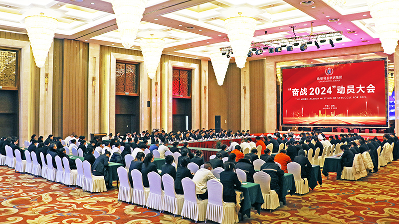 一年春作首,萬事行為先。2024年2月20日,歐堡利亞酒店集團在歐堡利亞大酒店歐堡廳隆重召開了“奮戰(zhàn)2024”動員大會,歐堡利亞酒店集團總經(jīng)理鄧棟、副總經(jīng)理胡也華、王毅剛及總經(jīng)理助理李利、集團本部各部門人員、12家酒店及濱海商管公司領班及以上管理人員等156人參加了會議,振奮龍馬精神、不負大好春光,誓以意氣風發(fā)的工作熱情、敢為人先的工作態(tài)度、求真務實的工作作風、篤毅前行的工作干勁,頂起自己該頂?shù)哪瞧臁⒖钙鹱约涸摽傅哪欠葚煛幤鹱约涸摖幍哪强跉猓眯挠们橛昧τ弥堑貖Z取2024年首季開門紅。下午兩點鐘,“奮戰(zhàn)2024”動員大會在一片熱情洋溢、激情澎湃的氣氛中揭開了帷幕,歐堡利亞酒店集團總經(jīng)理鄧棟作了題為《心懷感恩履職擔當、銘記初心砥礪前行,以趕考心態(tài)、拼搏姿態(tài)、奔跑狀態(tài)全面完成2024年全年各項目標任務》的動員報告。▲ 歐堡利亞酒店集團總經(jīng)理鄧棟作動員報告歐堡利亞酒店集團總經(jīng)理鄧棟在動員報告中指出,今天召開“奮戰(zhàn)2024”動員大會,旨在廣泛動員全體歐堡利亞酒店人要感恩企業(yè)提供展示自我才華、實現(xiàn)人生價值、謀取薪資福利的大好平臺,扛起恪盡職守的硬擔子,鉚足敢為善為的真干勁,弘揚真抓實干的好作風,練就提質(zhì)增效的強本領,迅速掀起開春即開工、開局即奮戰(zhàn)、起步即沖刺的干事熱潮,眾志成城地為歐堡利亞酒店集團在2024年順利實現(xiàn)首季開門紅、半年雙過半、全年滿堂彩的既定目標奠定堅實基礎!為使歐堡利亞酒店集團2024年力爭首季開門紅、半年雙過半、全年業(yè)績紅,鄧總從“過去一年實現(xiàn)了創(chuàng)歷史新高目標,這為全面完成新一年目標任務起到了蓄勢賦能的作用”、“各單位今年1月份實現(xiàn)了可觀經(jīng)濟效益,這為全面完成新一年全年目標任務開了個好頭”、“ 各單位今年春節(jié)期間取得喜人業(yè)績,這為新一年打好開局戰(zhàn)、實現(xiàn)開門紅助了一臂之力”、“ 各級管理人員要知悉新一年目標任務,只有心中有目標才會使自己的工作有方向和動力”、“ 各級管理人員都要強化責任擔當,凝聚磅礴力量推動新一年經(jīng)營管理各項工作落地見效”等方面作了重點闡述,為全體歐堡利亞酒店人擘畫了發(fā)展藍圖、理清了工作思路、吹響了戰(zhàn)斗號角、指明了工作方向。▲ 歐堡利亞酒店集團副總經(jīng)理胡也華發(fā)言