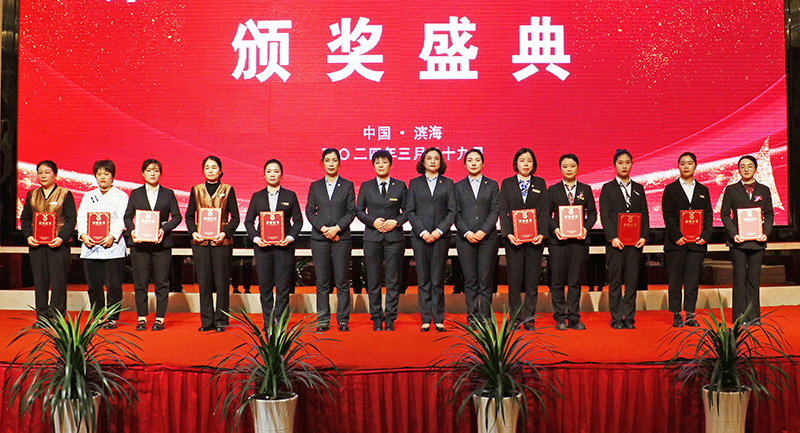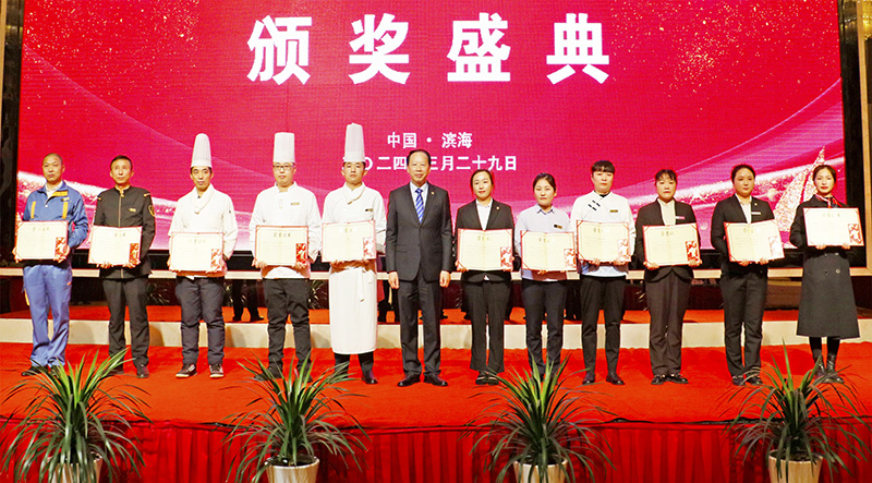 本屆崗位技能大賽的8個比賽項目評委們認真履行職責,嚴格遵循比賽項目的評分標準,實事求是、客觀公正地為每一位參賽選手評分,為本屆大賽營造了公開、透明、公平、公正的良好氛圍。為獲得“最佳組織獎”、“優秀組織獎”的4家參賽單位頒獎▲歐堡利亞宴會中心總經理夏春蘭、北辰酒店副店長朱麗麗、濱海格林東方酒店副店長王月華、濱海江南明灶代理店長楊風▲濱海格林豪泰酒店店長孫進霞、建湖格林東方酒店店長張華、▲歐堡利亞格林豪泰酒店店長周蘭婷、建湖江南明灶店長謝晨、建湖格菲酒店副店長吳鳳蘭為獲得“銅牌技術能手”的6位參賽選手頒獎學業務練本領強素質,爭當技術能手;靠技能賽水平展風采,賡續工匠精神。經過緊張激烈的角逐比拼后,134位參賽選手中有51人獲得了8個參賽項目的“銅牌技術能手”、“銀牌技術能手”、“金牌技術能手”的榮譽稱號,歐堡利亞大酒店摘取了“最佳組織獎”,歐堡利亞宴會中心、歐堡利亞北辰酒店、歐堡利亞建湖江南明灶均榮膺了“優秀組織獎”,并在歡快、喜悅的音樂中舉行了現場頒獎儀式。