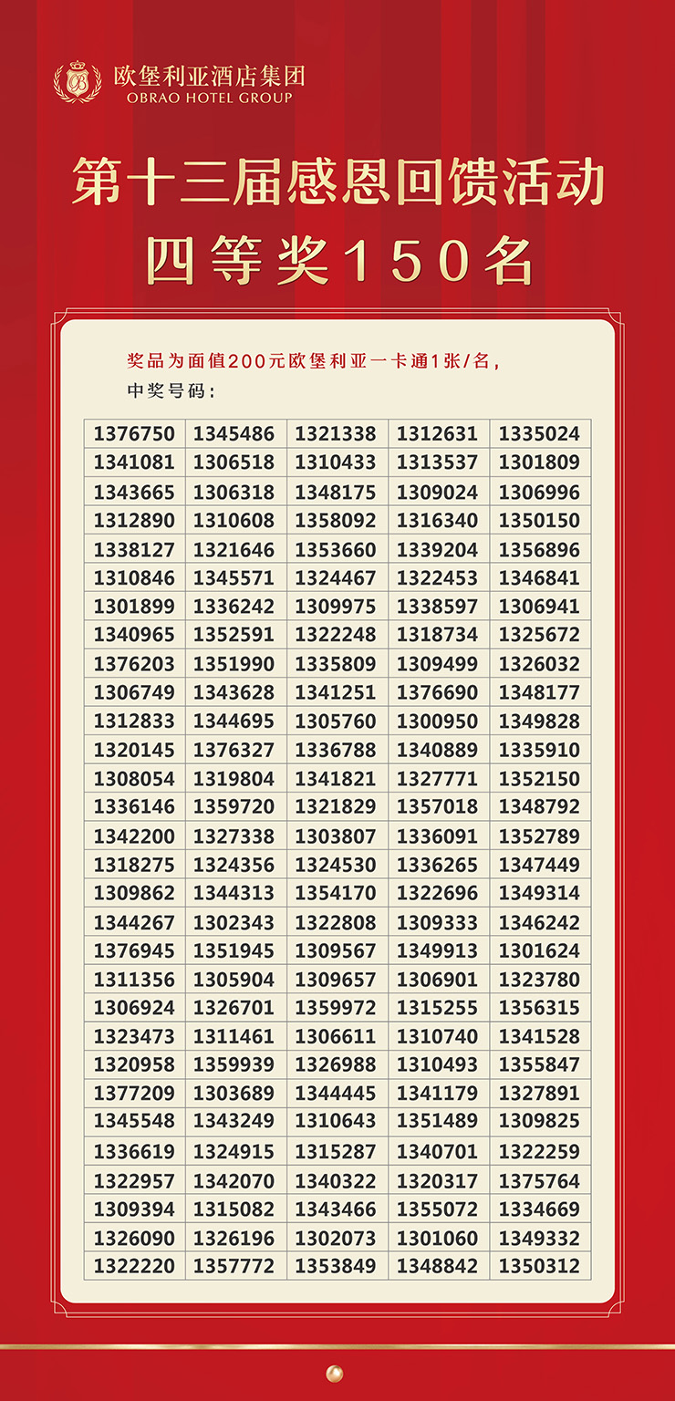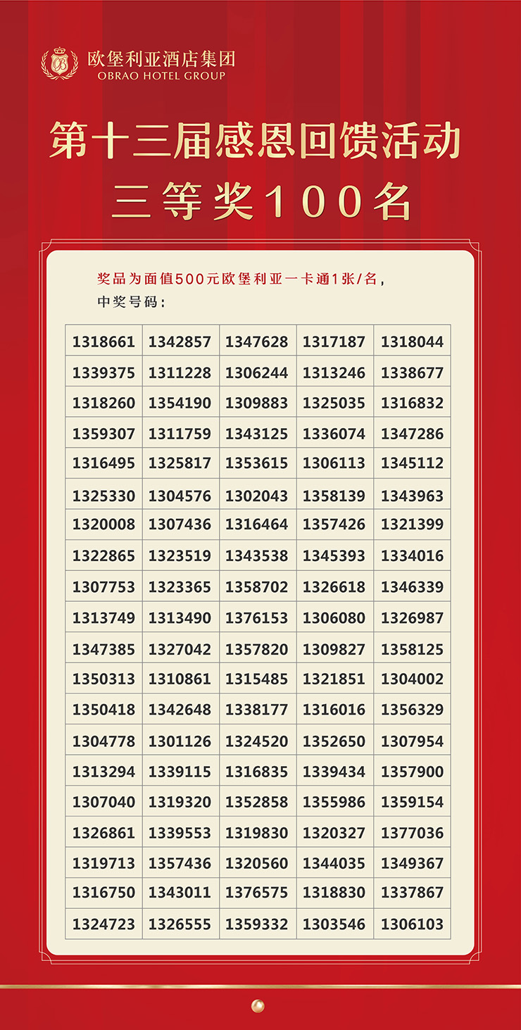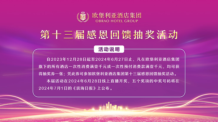 ▲歐堡利亞酒店集團第十三屆感恩回饋活動抽獎規則