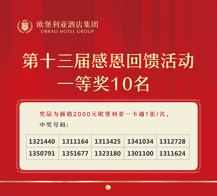 【用真心感恩一路相隨 憑行動回饋無限信任】—熱烈祝賀“歐堡利亞酒店集團第十三屆感恩回饋活動”取得圓滿成功