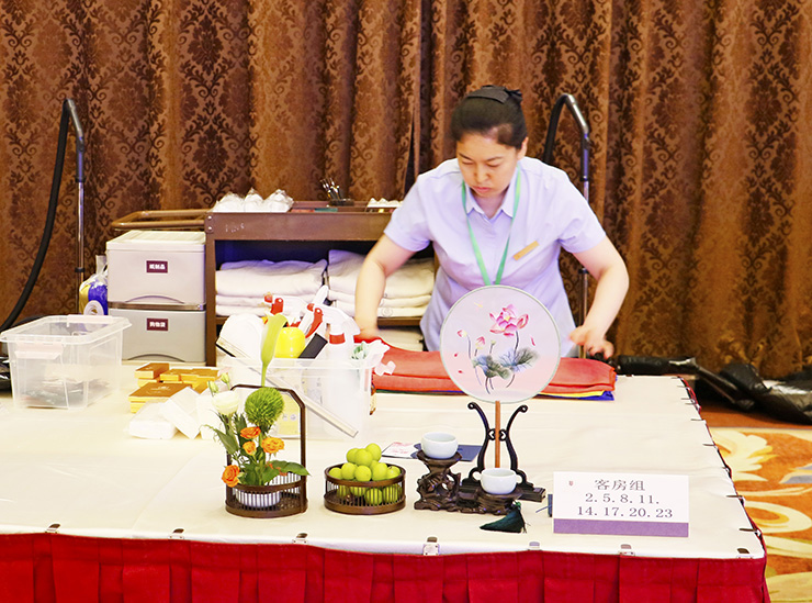 此次選拔賽設前廳服務、客房服務、中餐服務、西餐服務四個競賽項目,均分為理論考試、技能操作兩項考核,理論考試內容涉及了近期國內時事政治、飯店服務專業知識,所有參賽選手均須參加45分鐘內完成80道單選題及多選題的理論考試;技能操作要從行業規范知識、服務操作技能、英語口語表達、語言溝通協調、突發事件應對等方面,著重對前廳服務(儀容儀表、入住登記、結賬服務、用英語介紹飯店及旅游文化資源信息、用英語回答前廳服務知識)、客房服務(儀容儀表、準備工作車、鋪床、VIP禮遇小品設計)、中餐服務(儀容儀表、中餐宴會擺臺、主題餐巾折花設計與布置、著名菜品推介)、西餐服務(儀容儀表、西餐宴會擺臺、西餐宴會服務、用英語回答西餐服務知識)等內容加以考查。