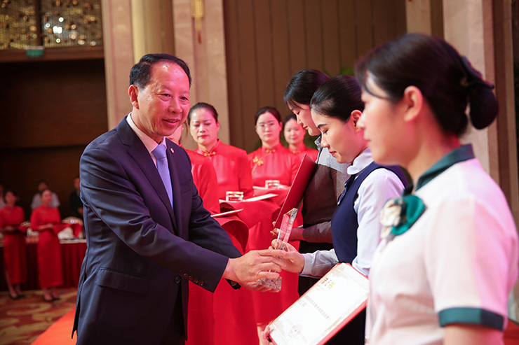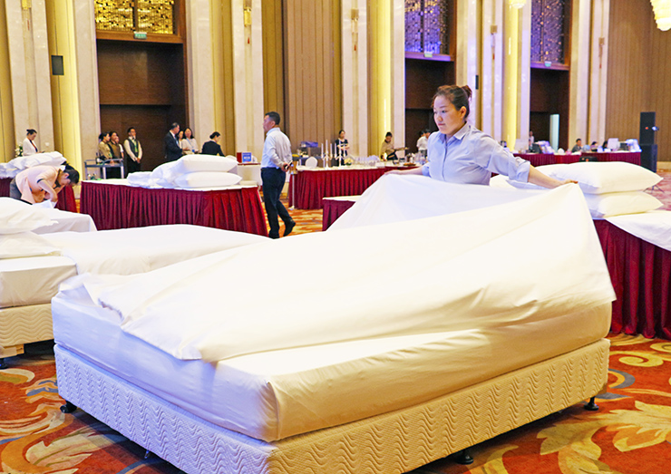 為榮獲“優秀組織獎”的6個縣(市、區)代表隊領隊頒獎一分耕耘一分收獲,成功青睞有準備者。經過緊張激烈的角逐比拼后,各縣(市、區)代表隊競賽決出了6個“優秀組織獎”,74名參賽選手中有24人分別獲得了四個競賽項目的“一等獎”、“二等獎”、“三等獎”,其中歐堡利亞大酒店陳俊、辛可可、王珊珊、錢海燕、沈玉靜分別獲得了“客房服務一等獎”、“前廳服務二等獎”、“西餐服務二等獎”、“客房服務三等獎”、“前廳服務三等獎”,歐堡利亞北辰酒店王夢蝶、張麗麗、周竹蘭分別獲得了“前廳服務二等獎”、“前廳服務三等獎”、“客房服務三等獎”,充分展示了歐堡利亞酒店人愛崗敬業的精神風貌和嫻熟精湛的服務技能。星級旅游飯店是展示一個城市旅游服務的重要一環,決定著一個城市服務質量的好壞,從業人員的職業素養是展示星級旅游飯店形象的最有力代言。2024鹽城星級旅游飯店服務技能選拔賽歷時570分鐘,既是鹽城市文廣旅局對全市星級旅游飯店服務技能人才隊伍水平的一次大檢閱,又是引導鹽城市星級旅游飯店從業人員學知識、學技術、練技能、強服務的一次大動員,這不僅為鹽城市星級旅游飯店從業人員構建了各顯神通、展示風采、交流互鑒、鍛煉提升的良好平臺,還增強了鹽城市星級旅游飯店從業人員的技能水平、服務質量,更推動了鹽城市文化旅游事業和飯店產業高質量發展。