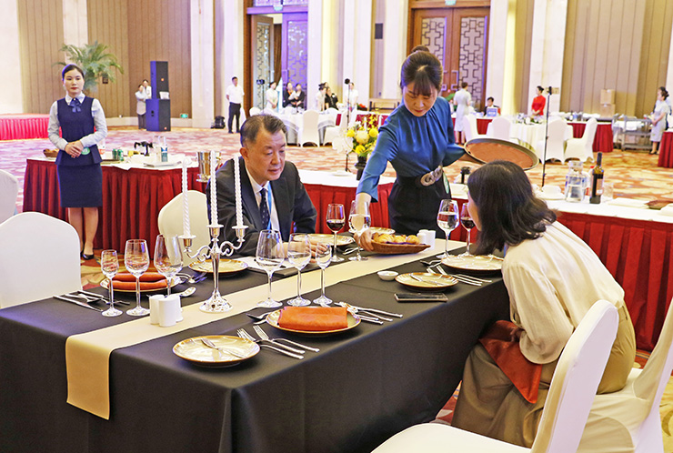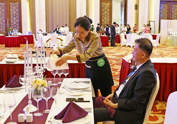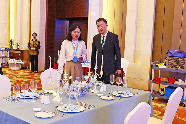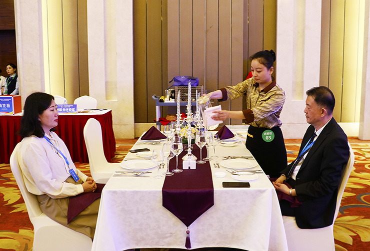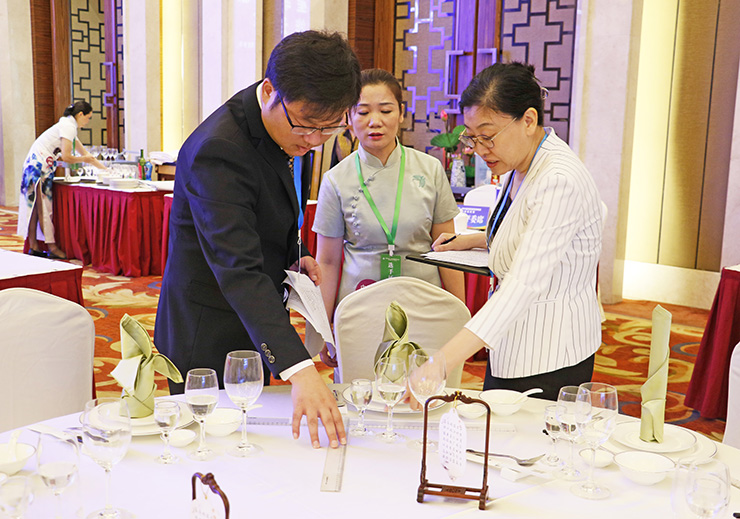 為保障此次選拔賽取得圓滿成功,2024鹽城星級旅游飯店服務技能選拔賽組委會制定了詳細的工作方案,競賽規則和評分標準完全按照2024年江蘇省星級旅游飯店服務技能競賽標準實施,評委近距離或化身“客人”觀察參賽選手們的服務,結合參賽選手的儀表儀容、業務知識、服務質量、實際操作、動作規范等綜合考評著每一位參賽選手,嚴謹細致、公平公正地為每一位參賽選手打出技能操作的合理得分。