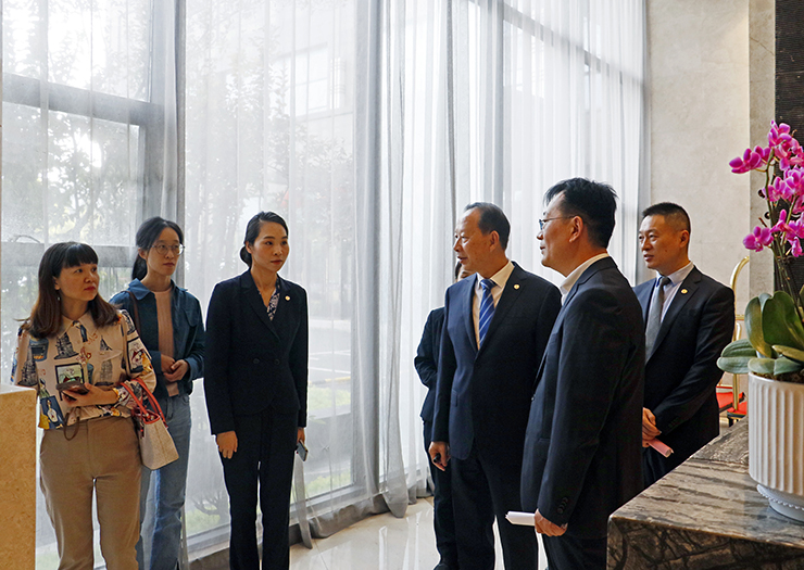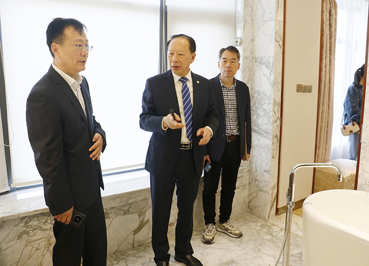 ▲歐堡利亞酒店集團總經理兼歐堡利亞大酒店董事長鄧棟陪同檢查