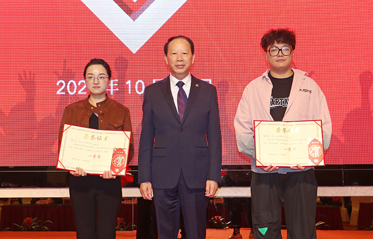 為榮膺一等獎(jiǎng)的2名獲獎(jiǎng)選手頒獎(jiǎng)