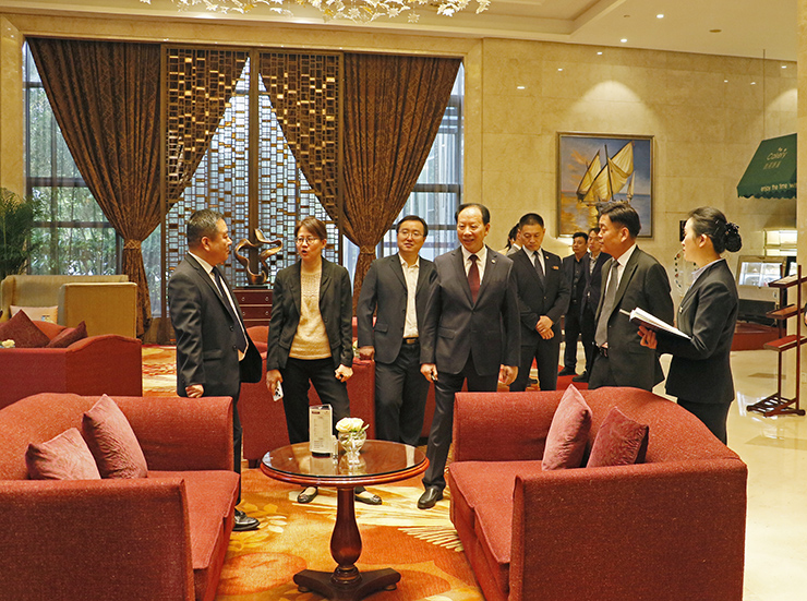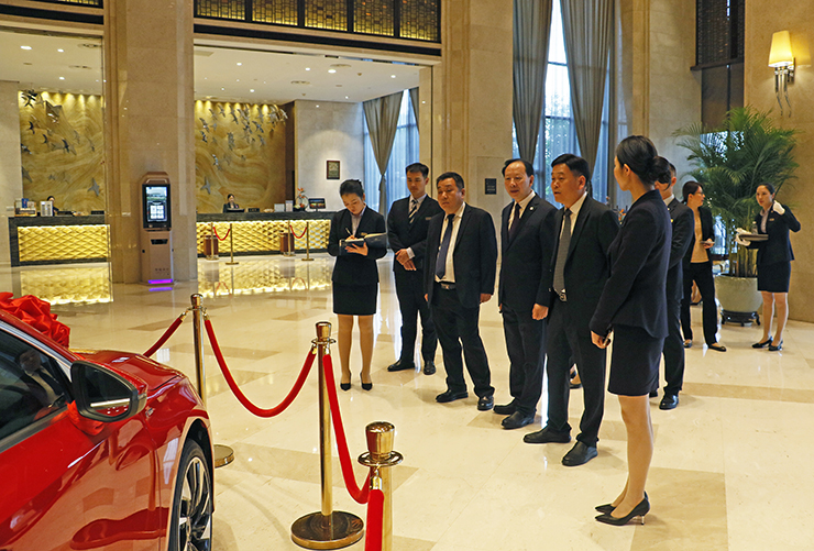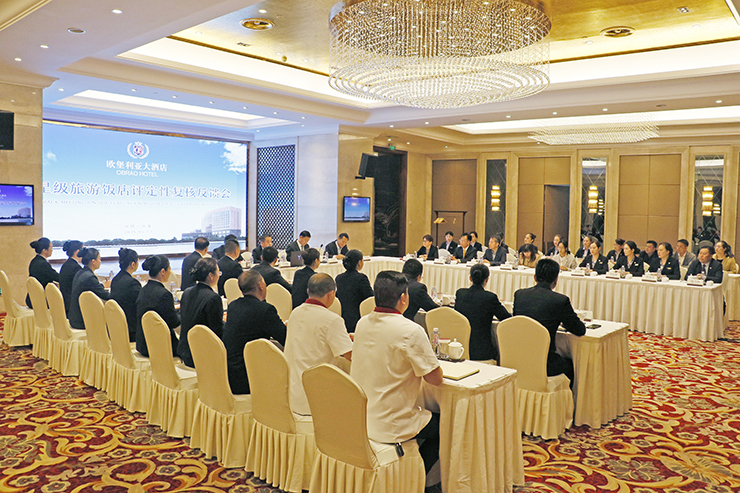 2025年5月12日16時10分,兩位國家級星評員在省市縣文旅部門領導、酒店高管的陪同下,遵循《旅游飯店星級的劃分與評定》(GB/T14308-2023)等行業標準,分別對歐堡利亞大酒店的前廳、客房、餐廳、會議、康樂、工程、安全及員工施設等對客服務區域、公共區域設施、對客服務內容、后臺保障部位作了全面而嚴格的現場檢查和臺賬查閱。