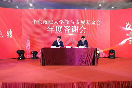 匯八方涓流,襄教育事業,在華東政法大學教育發展基金會年度答謝會暨專項籌款行動發布會上,主持人首先向在場人員介紹了與會領導、嘉賓以及捐贈背景,并通過一支專項籌款行動宣傳片,向在場嘉賓展示了華東政法大學教育發展基金籌款行動的理念和職責。