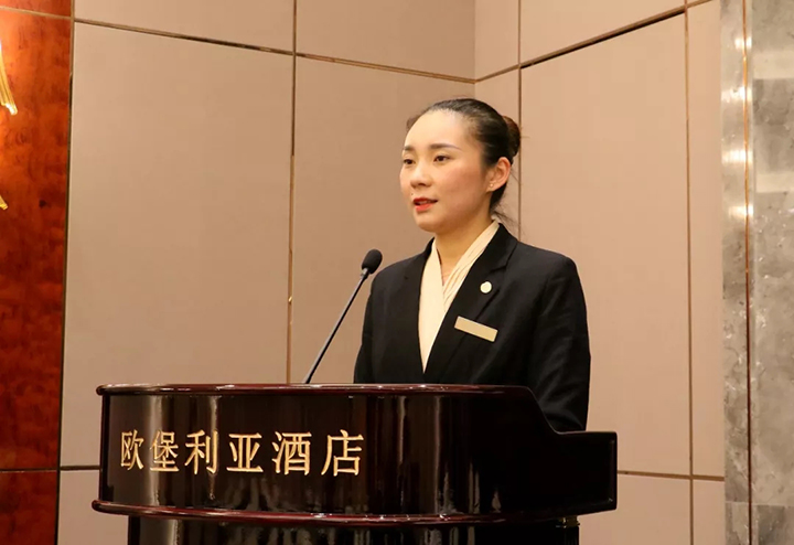 ▲歐堡利亞北辰酒店餐飲部副經理龔蓮蓮表態發言