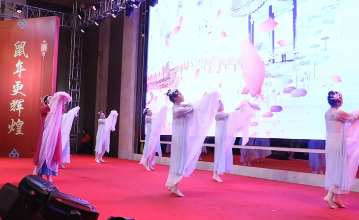 18:18分,伴隨著喜慶、祥和、給力、溫暖的開場舞《歡天喜地》,四位主持人華麗登場,共襄了一場題為“同心筑未來,鼠年更輝煌”的迎新春聯(lián)歡盛會(huì)。
