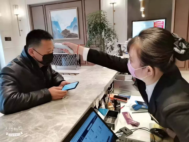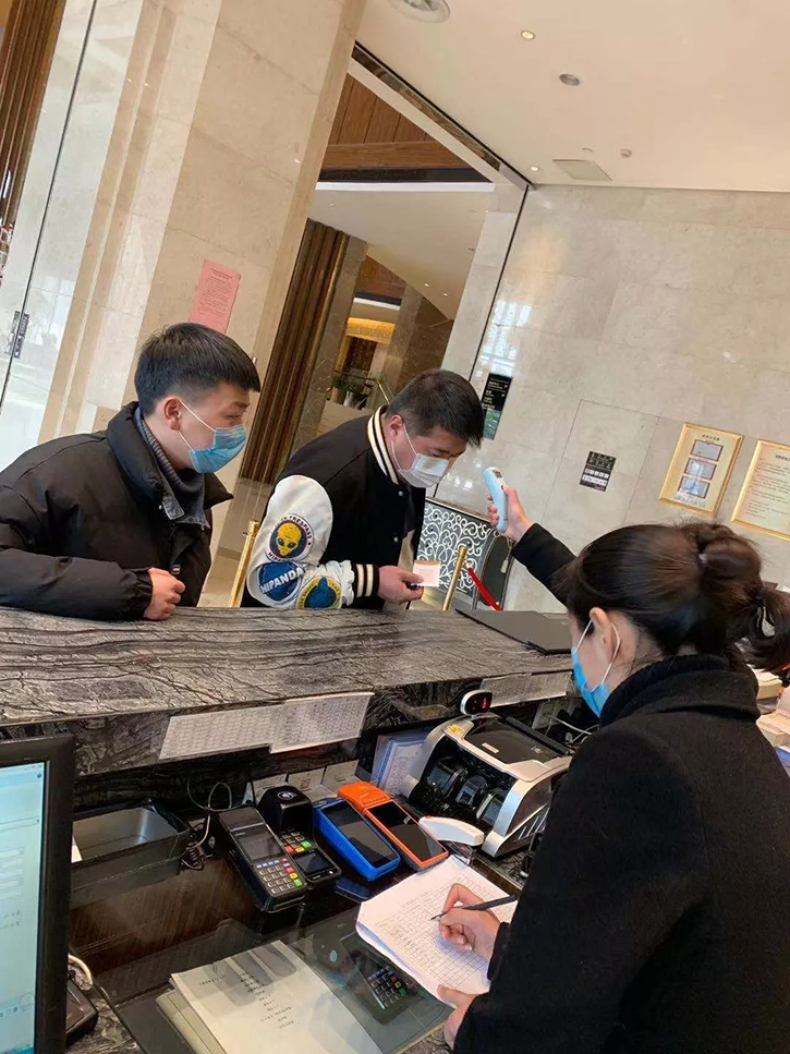 要求密切關注來自湖北、湖南等重疫區的賓客,如果發現立即報告,采取統一集中安置;備齊感應體溫計、一次性口罩,及時為賓客提供需求服務,并在每天早晚為所有入住酒店賓客各測一次體溫,發現異常情況立即報告。