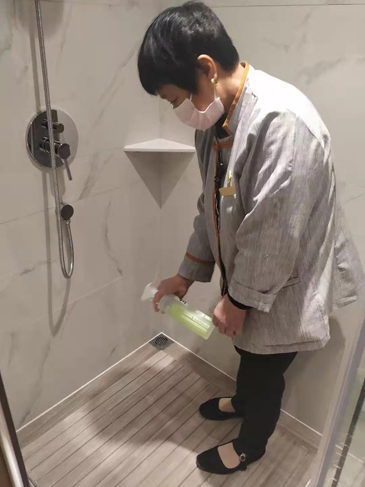 酒店是人員相對密集、流動量大的公共場所。歐堡利亞酒店集團旗下各家酒店每天都安排專業的保潔人員對公共區域作全面定時消毒、認真記錄,其中電梯每隔兩小時消毒一次、門把手每隔一小時消毒一次,決不留任何一個死角。
