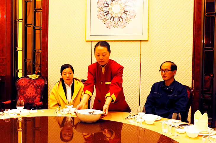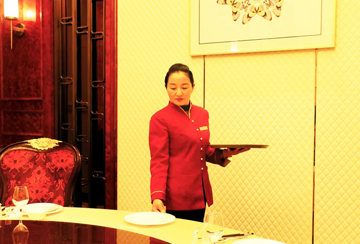 餐飲托盤是在餐前擺臺、端送茶水、上菜斟酒、收臺整理等對客服務過程中經常被使用到的服務工具,可減少勞動強度、提高服務效率,也體現出餐飲服務中文明、安全、衛生的一種規范化操作。正確使用托盤是每一位餐飲服務員所必須掌握的基本功,也是規范化服務和文明操作的基本要求, 更是創造餐飲高質量的重要元素。