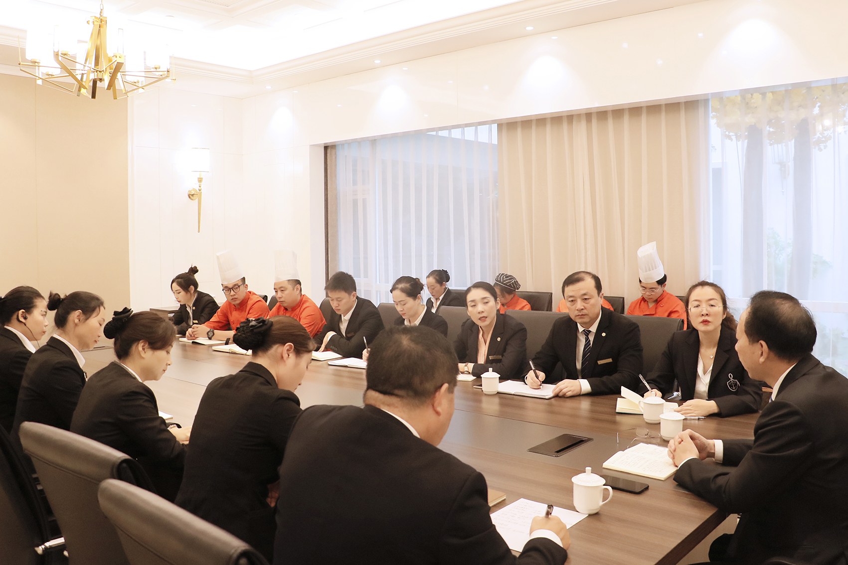鄧總強調,自2018年12月28日以來,歐堡利亞北辰酒店在戴春明董事長的正確領導下,在戴榮鋼、趙國祥、朱麗麗等負責同志的奮發有為下,酒店的經營業績蒸蒸日上,管理水平不斷提升。剛剛過去的雙節,歐堡利亞北辰酒店客房營收實現27.78萬元、同比去年增幅25.95%,餐飲營收實現73.79萬元;今年7月26日,鹽城市文旅局檢閱了歐堡利亞北辰酒店創建“四星級旅游飯店”的工作成果,無論是硬件抑或是軟件,都充分彰顯了歐堡利亞酒店的品牌魅力。這些成績的取得,得益于歐堡利亞北辰酒店有一支自覺性高、執行力好、責任心強的管理團隊,得益于管理人員的協同配合和廣大員工的不懈努力。