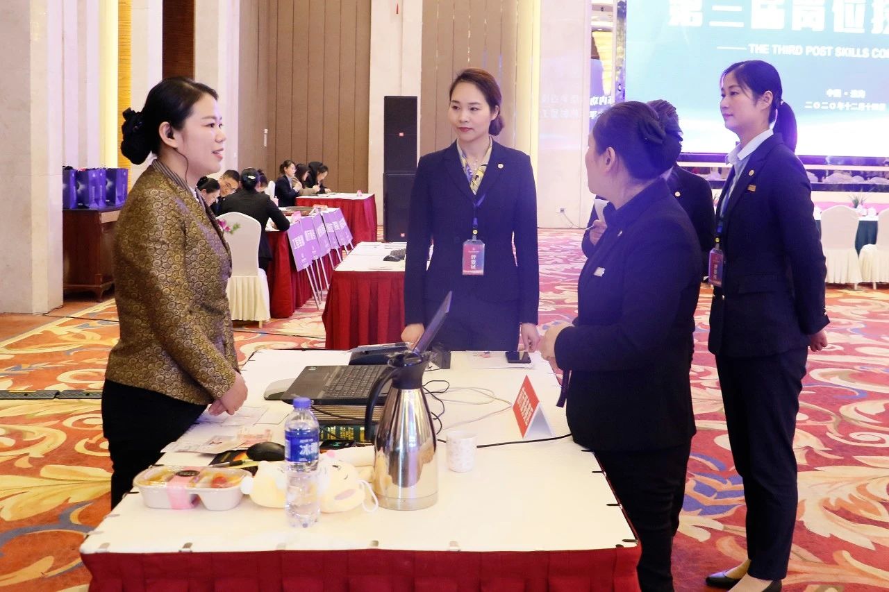 前廳服務的參賽選手通過12分鐘的情景模擬,自然流暢地完成了接受預訂、辦理入住、結賬退房、抽題答題的考核環節,規范標準的操作流程、優質高效的接待水平、靈活敏捷的應變能力、盡善盡美的對客服務,讓大賽評委和觀摩人員領略到這就是一個酒店的靈魂所在。