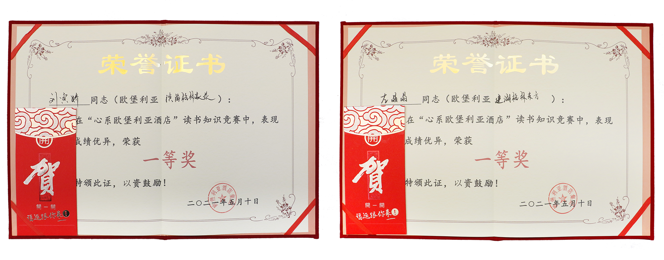 ▲“心系歐堡利亞酒店”讀書知識競賽一等獎2名