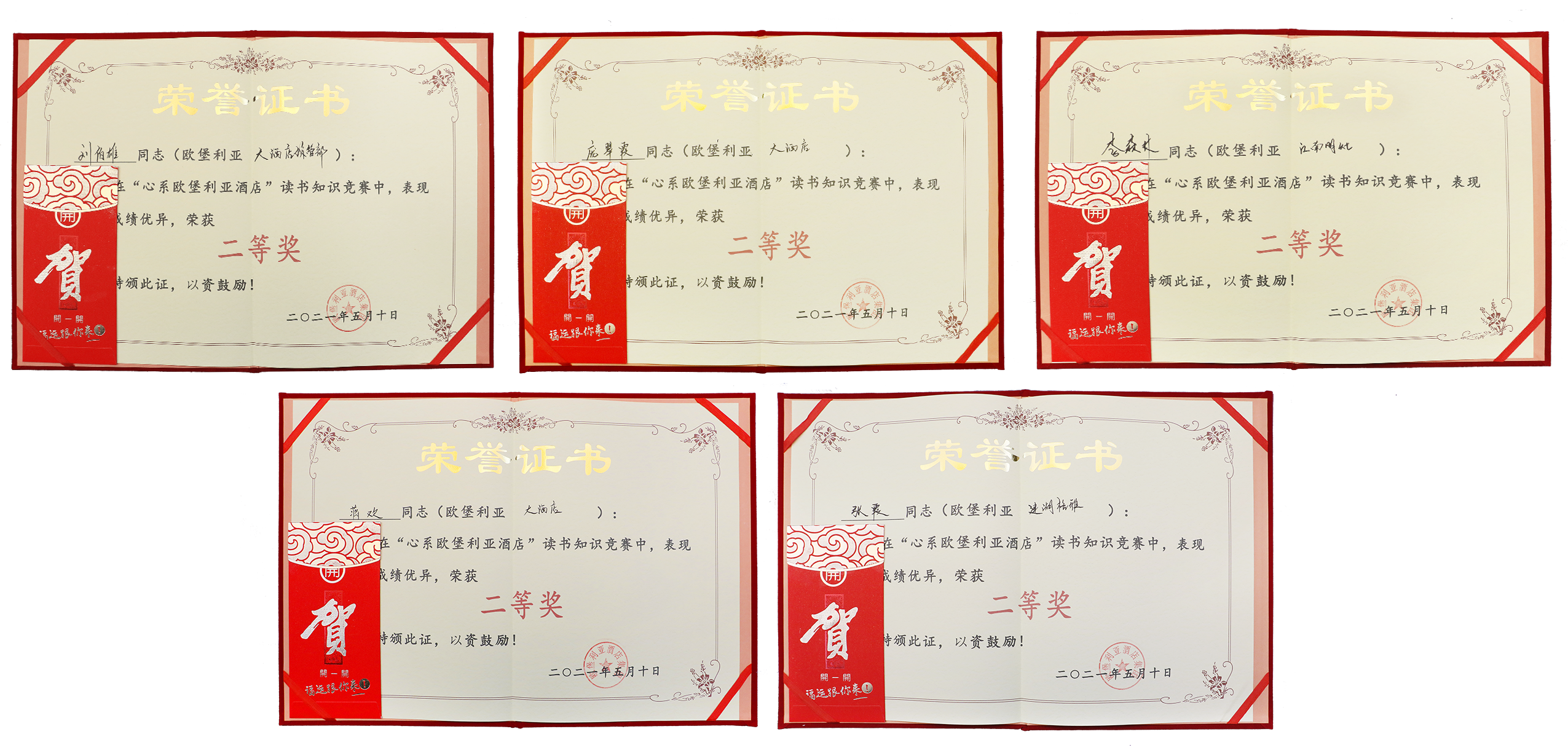 ▲“心系歐堡利亞酒店”讀書知識競賽二等獎5名