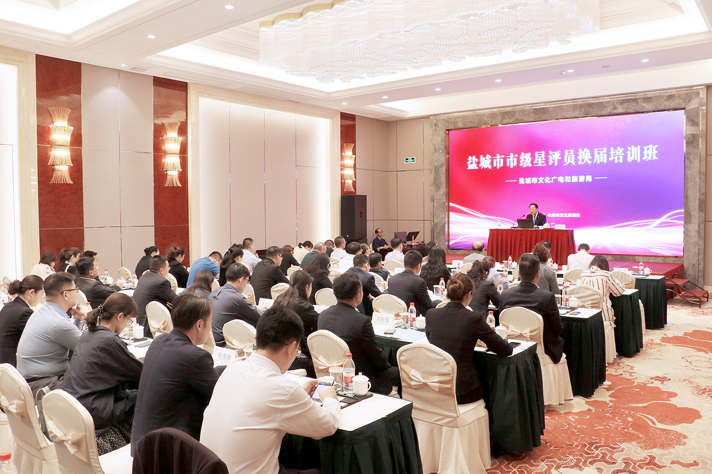 為提高市級星評員業務水平,加強旅游飯店星級評定工作,確保星級旅游飯店的質量標準,2021年6月2-3日,鹽城市旅游星級飯店星評員換屆暨培訓會在歐堡利亞北辰酒店召開,市級星評員候選人、各縣(市、區)文廣旅局分管負責人及相關科負責人共計50人參加了會議,鹽城市文廣旅局副局長唐文健到會講話,并向新一屆市級星評員頒發了聘書。