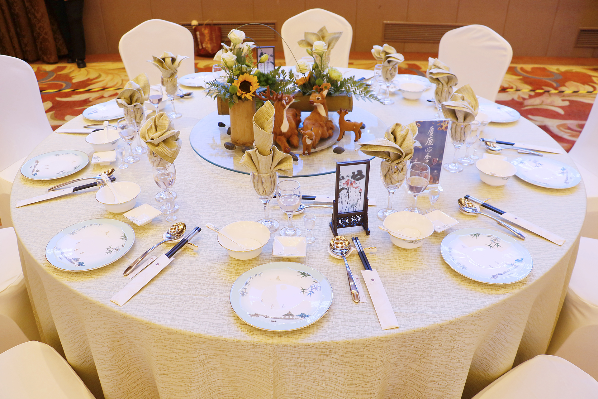 餐廳服務(wù)的參賽選手面帶微笑、步履輕盈,輕輕一拋、準(zhǔn)確無誤地將臺(tái)布鋪在餐桌上,又從主人位開始拉椅定位,麻利地將碗、碟、盤、勺、筷架、筷子、三套杯等一整套光潔的餐具依序擺開,一塊平淡無奇的餐巾竟能被折出花開富貴、荷塘月色、喜結(jié)良緣等多種花,原本空無一物的圓餐桌經(jīng)過參賽選手的創(chuàng)意裝飾頓時(shí)充滿了藝術(shù)美感,一舉一動(dòng)間迸發(fā)出規(guī)范、標(biāo)準(zhǔn)、優(yōu)雅、自信,這便是對(duì)餐廳服務(wù)技能最好的詮釋。
